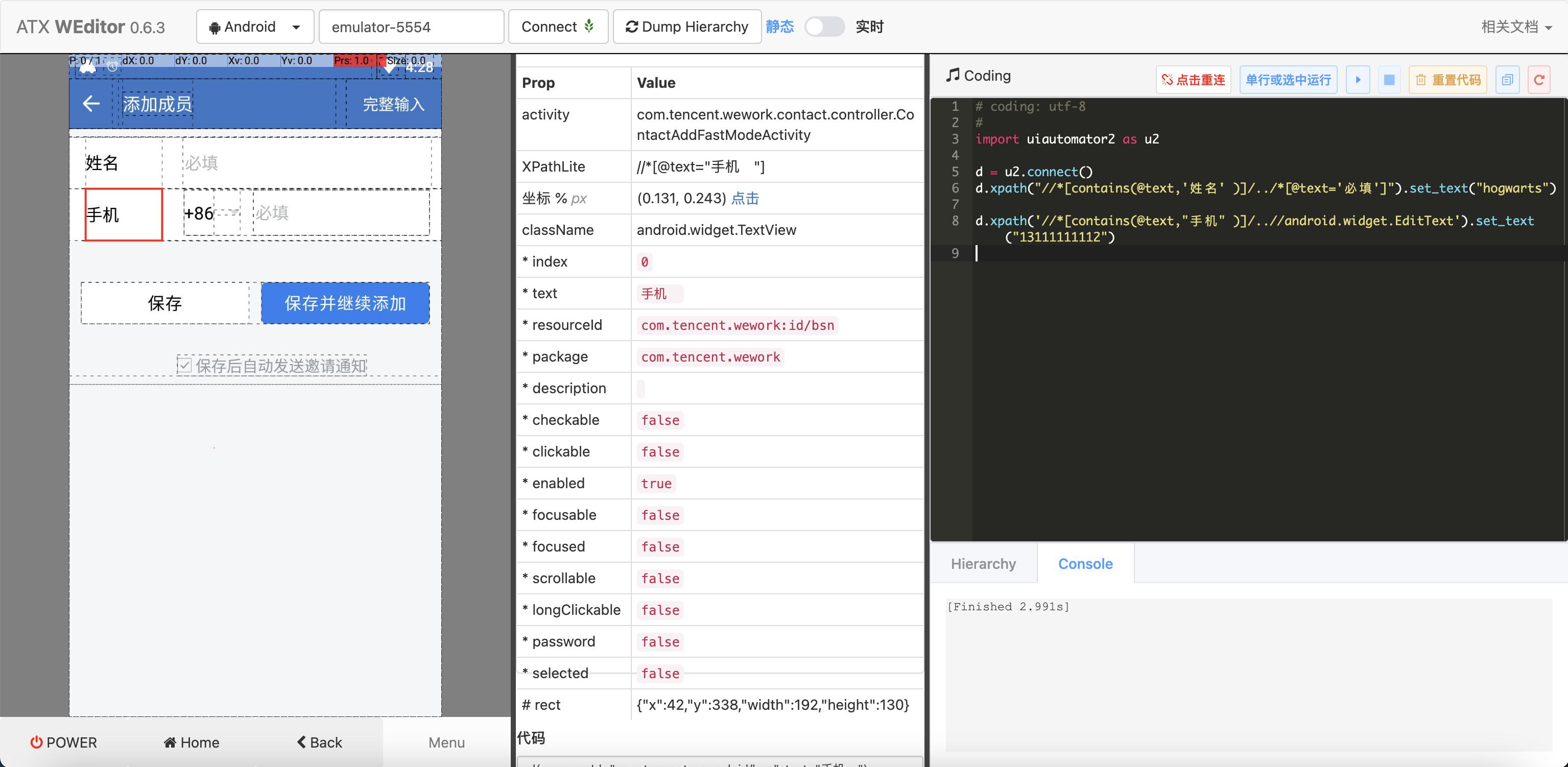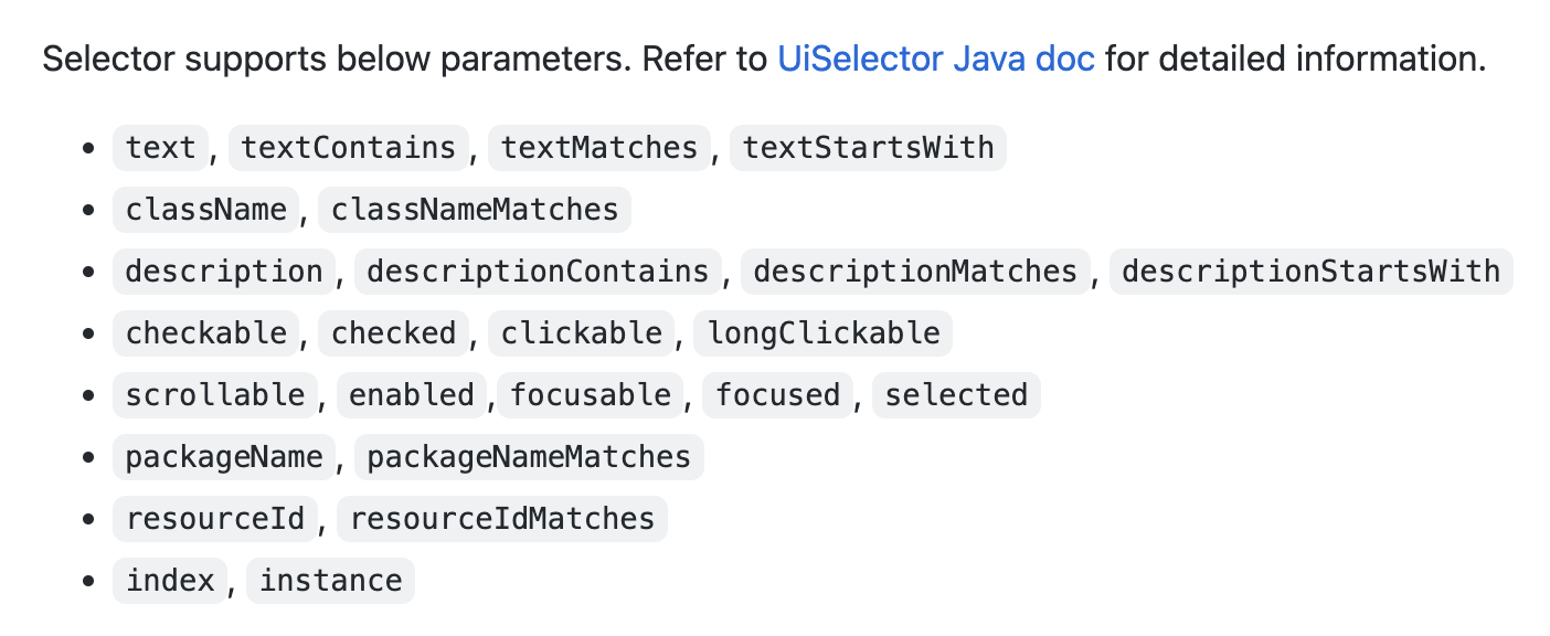 - d(text='Clock', className='android.widget.TextView') 选择结点文字为clock 并且 classn属性为android.widget.TextView的元素